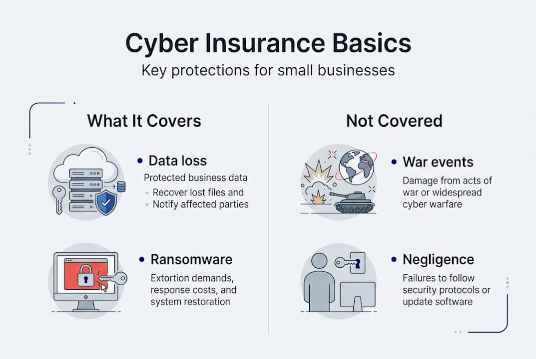Pro Tip: Before purchasing a policy, read the security requirements carefully. Many claims are denied not because the attack was excluded, but because the business failed to maintain the controls it agreed to at underwriting. See cyber liability insurance details for a breakdown of what insurers typically require.